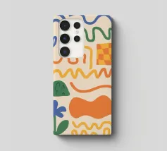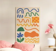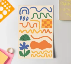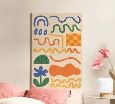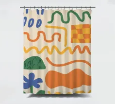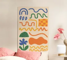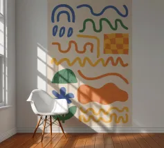 Una collezione di scarabocchi astratti, tra cui linee ondulate, archi e forme geometriche, è disposta in una composizione equilibrata, che trasmette un senso di libertà creativa e di energia giocosa.