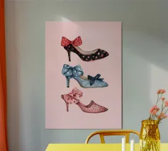 Fate un salto di stile con questa favolosa stampa d'arte di scarpe con plateau retrò! Il disegno presenta un paio di scarpe eleganti e stilizzate in un'impressionante combinazione di verde, rosa e bianco, complete di suole con plateau. Le linee audaci e i colori vivaci evocano la moda iconica degli anni '70 e '80, portando un senso di glamour giocoso e di individualità. Questo pezzo è perfetto per gli appassionati di moda e per chiunque voglia aggiungere un tocco nostalgico e uno stile unico al proprio arredamento. Questa arte digitale di alta qualità è presentata in una straordinaria risoluzione di 7000x5000 pixel a 300 dpi, che garantisce dettagli nitidi e vi
