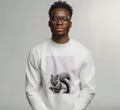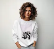 Un'accattivante illustrazione in bianco e nero di un animale impertinente, resa viva da linee decise e dettagli intricati. Questa opera d'arte mette in mostra la personalità e il movimento unici del simpatico soggetto, con texture espressive e un mix di ombreggiature morbide e nitide che ne evidenziano le caratteristiche naturali. Posizionata al centro su uno sfondo pulito e minimalista, l'opera emana energia e invita l'osservatore a entrare in un mondo monocromatico di grande impatto.