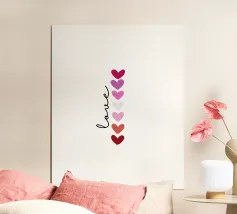 Il design moderno è composto da cuori colorati e dalla scritta LOVE. Un grande richiamo visivo. Perfetto come regalo, per San Valentino, per la festa della mamma, per i compleanni o semplicemente come piccolo dono.