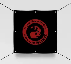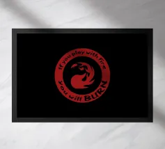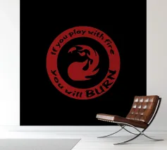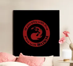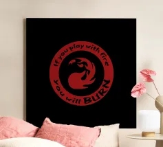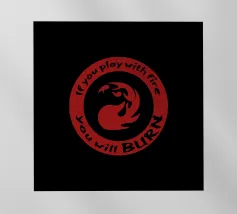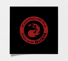 Un simbolo di mana rosso ornato dalla frase "Se giochi con il fuoco brucerai". Quest'opera mostra la natura di un mazzo burn mono-rosso. Per gli amanti della magia che comprendono l'essenza di questo mazzo, quest'opera è perfetta per evidenziare le qualità del burn.