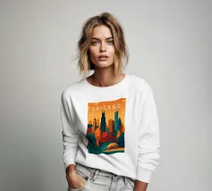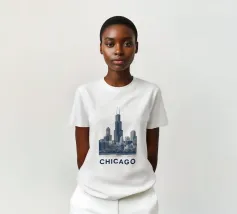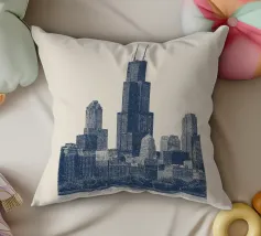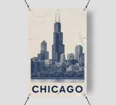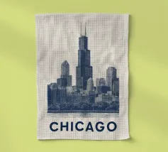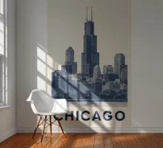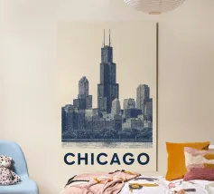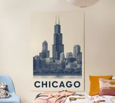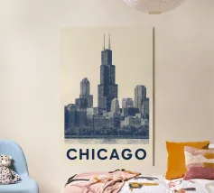 Questo poster mostra l'imponente skyline di Chicago nel caratteristico stile lino print, con la dominante Willis Tower al centro e il lago Michigan in primo piano. Perfetto per gli amanti dell'architettura americana, dell'estetica dello skyline e dei classici poster cittadini. Ideale per soggiorni, uffici o pareti creative dal sapore urbano.