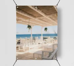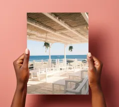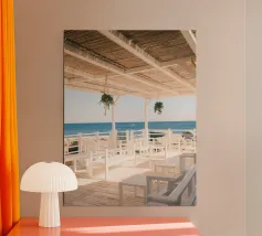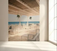 Una tranquilla terrazza costiera immersa nella luce del sole, affacciata sul blu infinito dell'oceano. Il luogo perfetto per rilassarsi, respirare e lasciare andare via le preoccupazioni.