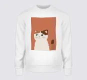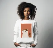 Ritratto stilizzato di un gatto calico con un'espressione decisamente scontrosa o scettica. Lo sfondo semplice e caldo in terracotta rende il muso pieno di carattere del gatto il fulcro innegabile dell'opera.