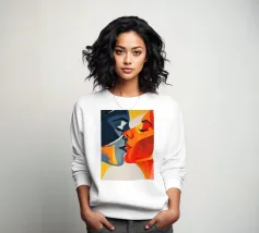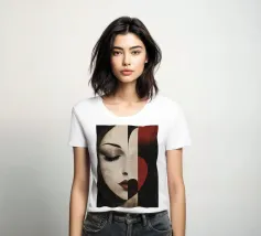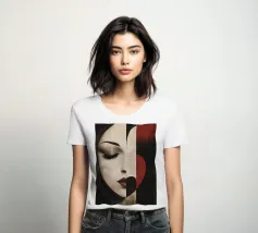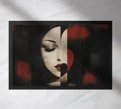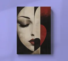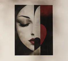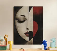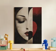 Accattivante fusione di minimalismo ed emozione, Silent Muse ritrae un sereno volto femminile che si fonde con una geometria astratta. I toni morbidi della pelle contrastano con blocchi audaci di rosso, nero e crema, formando una composizione a forma di cuore che simboleggia la calma interiore e la forza tranquilla. Gli occhi chiusi e i tratti delicati evocano eleganza, mistero e bellezza senza tempo: un'icona moderna dell'introspezione.