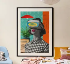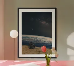 Una scena surreale di un pescatore solitario che si lancia nella galassia. Questo collage tranquillo e contemplativo cattura la pace della solitudine e la vastità del pensiero. Perfetto per sognatori e minimalisti.