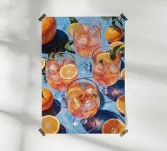 Un design giocoso e rinfrescante che celebra l'iconico cocktail italiano. Con toni arancioni brillanti e una spensierata atmosfera estiva, quest'opera d'arte porta nel vostro spazio lo spirito delle terrazze al tramonto, delle risate con gli amici e del tempo libero europeo. Perfetta per le pareti della cucina, per i bar di casa o per chiunque viva per i buoni drink e i bei momenti.