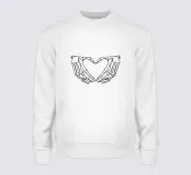 Un paio di mani scheletriche formano un cuore. Il disegno accosta i concetti di amore e mortalità.