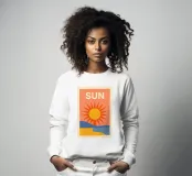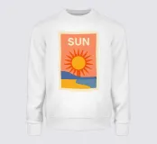 Un'esplosione di colori caldi e un sole grafico su uno sfondo stilizzato di spiaggia. Questo poster è un omaggio visivo alle estati vintage, al calore e all'energia solare. Un design allegro e solare per illuminare le vostre pareti tutto l'anno.