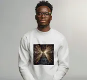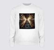 Una rappresentazione surreale di strutture architettoniche simmetriche e torreggianti che convergono verso una luce centrale incandescente. I disegni intricati, l'illuminazione calda e la prospettiva drammatica creano un'immagine impressionante e ultraterrena.
