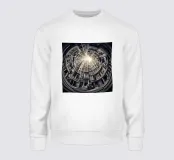 Questa immagine mostra una scena architettonica surreale con edifici concentrici disposti circolarmente. I toni monocromatici aggiungono un tocco vintage, mentre il centro illuminato dal sole crea profondità e un'illusione di altezza infinita.