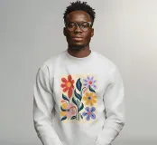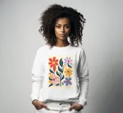 Un vivace motivo floreale nelle vibranti tonalità del rosso, del giallo e del viola, abbinato a eleganti foglie verdi. L'armoniosa combinazione di colori e la disposizione giocosa rendono questo disegno un'aggiunta elegante a qualsiasi interno. Perfetto per murales, cuscini, tazze e molto altro. Porta un'atmosfera fresca e allegra nella tua casa - ideale per gli amanti dell'arte e della natura che apprezzano i design moderni e creativi.