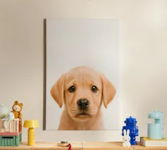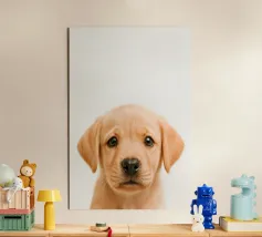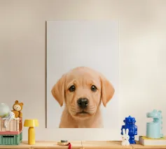 Questo cucciolo incanta a prima vista: Con i suoi grandi occhi, la sua morbida pelliccia e il suo sguardo fedele, porta cuore e armonia in ogni casa. Fotografato in stile studio su uno sfondo bianco, si adatta perfettamente alle moderne camere dei bambini, agli appartamenti degli amanti degli animali o agli interni scandinavi. Un pezzo forte della serie "Studio Critters" - chiaro, di alta qualità, da amare.