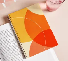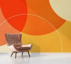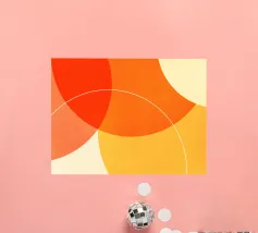 Forme geometriche circolari astratte e minimaliste con colori vibranti e contrastanti.