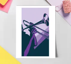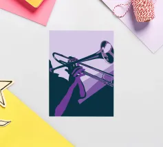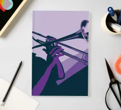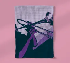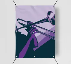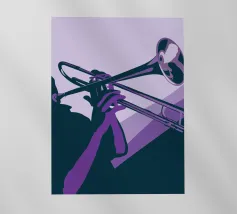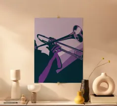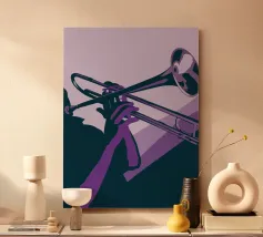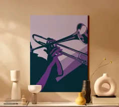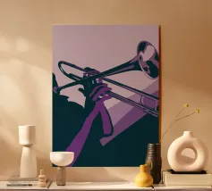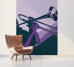Sentite lo spirito della musica attraverso un design pieno di emozioni. L'immagine di un trombettista perso nella musica crea un'atmosfera calda e stimolante.