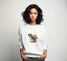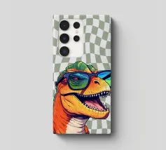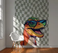 Questo vibrante T-Rex sfoggia un paio di eleganti occhiali da sole, che fondono la forza preistorica con la modernità. Un pezzo audace e divertente per gli amanti dei dinosauri e dell'arte tagliente.
