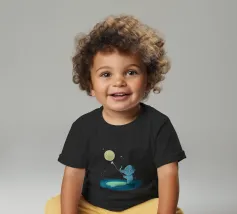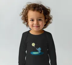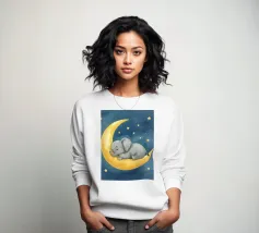 Questa adorabile opera d'arte mostra un piccolo elefante in una scena notturna su un campo da golf, che mira alla luna con una mazza da golf come una pallina. Si trova sul green illuminato sotto il cielo stellato, con un senso di tranquillità e immaginazione nell'aria. La luna, grande e luminosa, ricorda una pallina da golf in cima alla mazza dell'elefante, creando un'atmosfera giocosa e sognante.