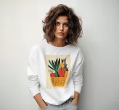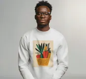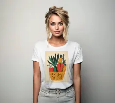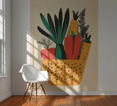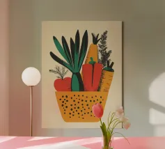 Un cesto ricco di colori e forme eleganti per valorizzare la vostra casa. Questa illustrazione contemporanea aggiunge un tocco di morbidezza ed energia, ideale per gli amanti della natura e del design puro.