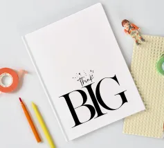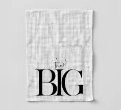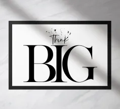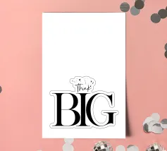 Arte testuale minimalista con slogan motivazionale. Poche parole e tanta verità! Un design che si adatta al motto della vita. PENSARE IN GRANDE. Non vuotare il sacco, vai alla grande.