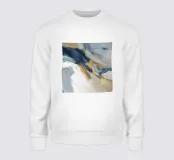 Ruscelli dorati si intrecciano con maree bianche e indaco, evocando un miraggio oceanico celeste.