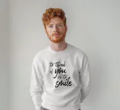 Scoprite il design delicato e stimolante "Pensare a te è sorridere". Questa illustrazione artistica presenta il testo "Pensare a te è sorridere" in un elegante carattere curvo su uno sfondo tranquillo color crema. La tipografia scritta a mano trasmette un tocco personale e caldo che cattura perfettamente la sensazione di connessione e gioia. I colori tenui e la disposizione armoniosa del testo creano un'atmosfera calda e rilassante.