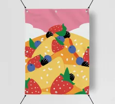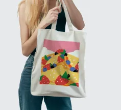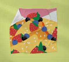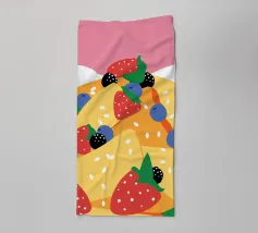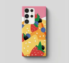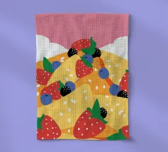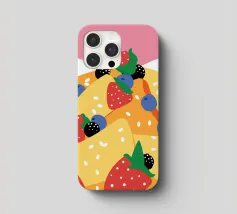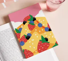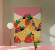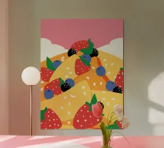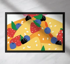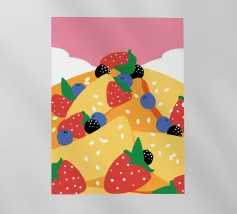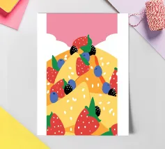 Illustrazione di una torta con guarnizioni di fragole, mirtilli e more.