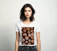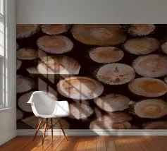Ogni tronco rivela una ricca tessitura, con anelli di crescita che segnano il passaggio del tempo. Il legno appena tagliato presenta una tonalità calda e dorata, con sottili venature che corrono lungo la sua lunghezza. Il profumo di pino o di quercia rimane nell'aria, evocando un senso di natura e di vita nella foresta. Alcuni tronchi sono spaccati, pronti per la legna da ardere, mentre altri rimangono interi, mostrando la forza e la bellezza grezza del legno naturale.