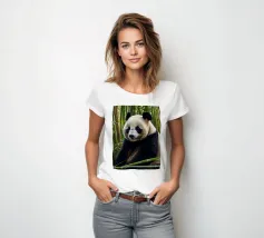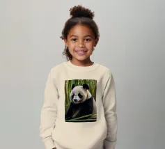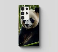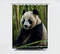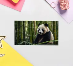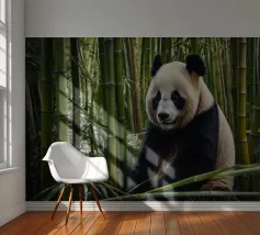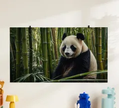 Un grande panda siede comodamente tra alti steli di bambù, godendosi il suo ambiente tranquillo. Il verde crea un'atmosfera tranquilla per questa adorabile creatura.