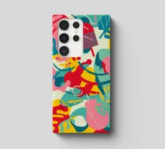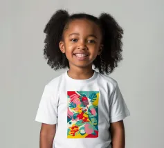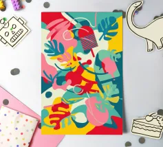 Un dipinto astratto meravigliosamente caotico è pieno di una collisione di colori vivaci, pennellate energiche e forme giocose, che esprimono una gioia pura, senza fronzoli.