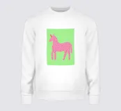 Questa giocosa illustrazione mostra un unicorno rosa con puntini su uno sfondo arancione e verde, perfetto per le camere dei bambini o per le decorazioni estive. La grafica dipinta a mano combina elementi fantasiosi con un design minimalista e crea un'atmosfera allegra che irradia gioia e creatività.