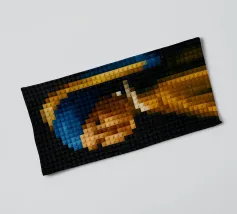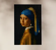 La famosa "Ragazza con l'orecchino di perla" di Vermeer, qui interpretata in modo creativo come mosaico LEGO. La chiara struttura a pixel, le borchie realistiche e l'armoniosa composizione dei colori rendono quest'opera un affascinante mix di cultura classica e pop. Una dichiarazione moderna per gli amanti dell'arte, i fan dei LEGO e gli spazi creativi - iconica, affascinante e straordinaria.