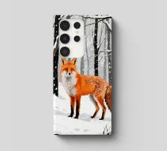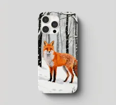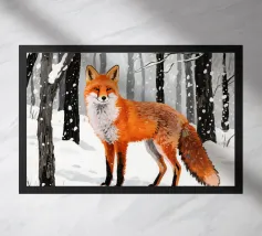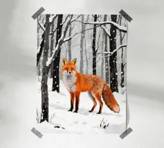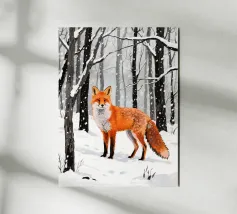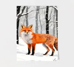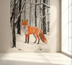 Volpe arancione nella foresta di neve con pittura fauvismo stile arte