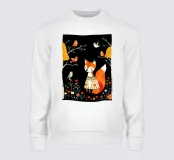 Una volpe illustrativa con uccelli e fiori nella foresta.