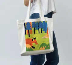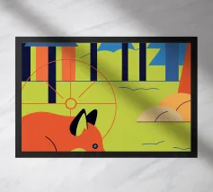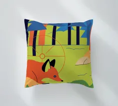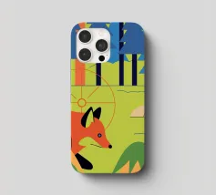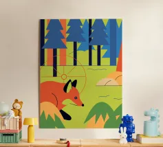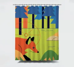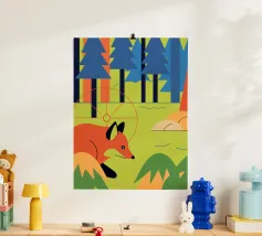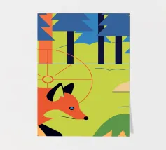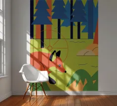 Godetevi una vivace illustrazione della fauna selvatica con una volpe in una foresta con alberi e vegetazione.