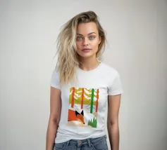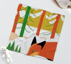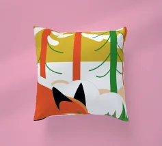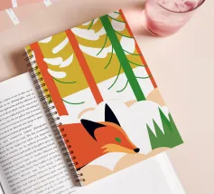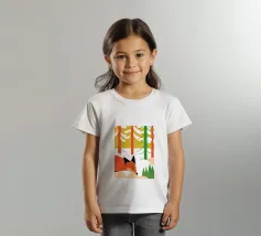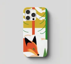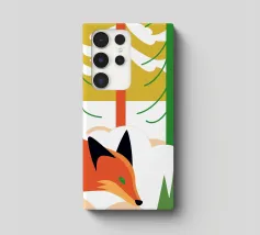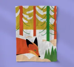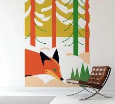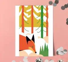 Godetevi una vivace illustrazione della fauna selvatica con una volpe in una foresta invernale con alberi innevati.