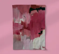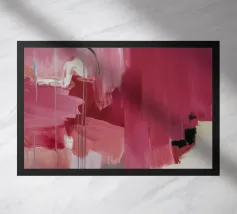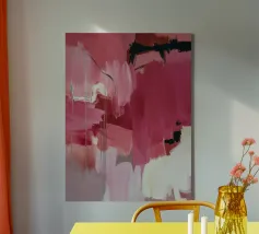 Un'energica pittura astratta con pennellate audaci e ampie in vibranti fucsia, magenta e rossi profondi, che creano un appassionato vortice di colore e movimento dal forte impatto emotivo.