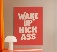 Iniziate la vostra giornata con una forte carica grazie alla nostra stampa tipografica "Wake Up Kick Ass". Questo messaggio audace prende vita in un morbido beige disegnato a mano, creando un contrasto sorprendente su uno sfondo rosso vintage. Il disegno emana fiducia e determinazione, perfetto per le camere da letto, le palestre domestiche o qualsiasi spazio che necessiti di una dose quotidiana di motivazione. La qualità artigianale del testo aggiunge carattere, rendendo ogni pezzo unico e stimolante. Lasciate che questa stampa accattivante vi ispiri ad abbracciare il guerriero che è in voi e a conquistare i vostri obiettivi con una determinazione incrollabile.