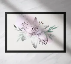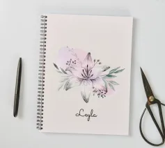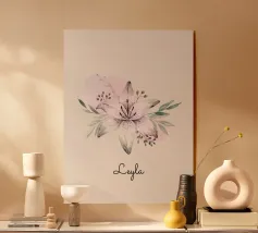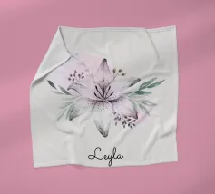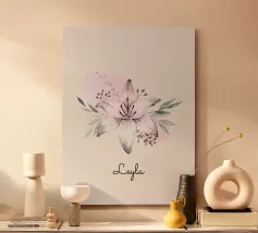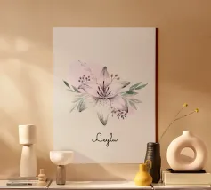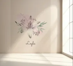 Bouquet acquerellato di fiori di lilium e foglie di eucalipto con nome personalizzabile