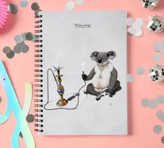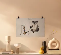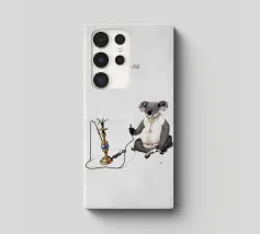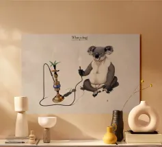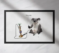 Comica illustrazione di un koala che si gode gli effetti della sua solita pianta di eucalipto. In modo meno tradizionale.