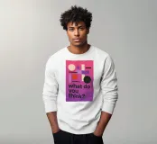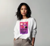 Questo moderno poster in stile Bauhaus combina forme geometriche chiare con un vibrante gradiente di colori dal rosa intenso al viola profondo. La scritta "What do you think?" in caratteri chiari e neri invita a riflettere. Perfetto per spazi creativi, soggiorni eleganti o uffici minimalisti.