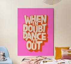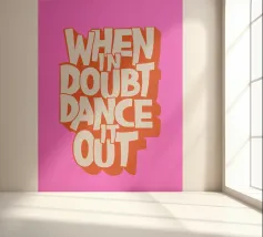 Vi sentite stressati? Questa stampa tipografica "When In Doubt Dance It Out" è il modo perfetto per risollevarvi il morale! La divertente e giocosa scritta bianca con un'ombra arancione risalta su uno sfondo rosa vibrante, creando un'atmosfera allegra ed energica. Questo poster è un ottimo promemoria per lasciarsi andare, divertirsi e ballare via le preoccupazioni. Perfetto per qualsiasi stanza che abbia bisogno di una dose di positività e di fascino retrò.