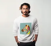 Una zebra creativa con strisce colorate nei colori dell'arcobaleno - un design giocoso pieno di gioia di vivere e di individualitร .Zebra con strisce arcobaleno uniche come motivo principale. Armoniosa composizione di colori con un'espressione amichevole. Simbolo di diversitร , creativitร  e orgoglio. Ideale per disegni infantili, moderni o legati alla cultura pop. Un vero e proprio eye-catcher dall'aspetto allegro.