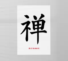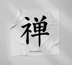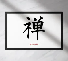 Quest'opera a inchiostro raffigura il carattere 禅 - Zen - nella classica scrittura Kaisho, impostato in modo calmo e chiaro. La componente sinistra 礻 si riferisce allo spirituale, al ritualistico; la componente destra 单 sta per semplicità. Insieme incarnano l'essenza dello Zen: la presenza spirituale attraverso la riduzione. Le pennellate controllate, la struttura chiara e l'assenza di qualsiasi ornamento rendono questa calligrafia un mantra visivo, un'eco silenziosa di chiarezza interiore e concentrazione. Sulla parete appare come un respiro silenzioso nella stanza. Disponibile anche su tessuti, ecc.