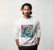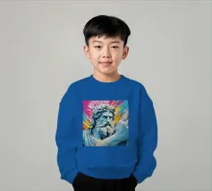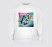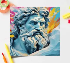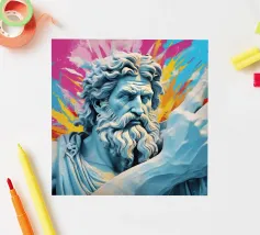 Il mito di Zeus, un dio della storia greca con gli occhi azzurri, vi guarda dall'alto. Ha gli occhi puntati su di voi. Non fatelo mai arrabbiare, altrimenti si scatenerà un fulmine o una tempesta.