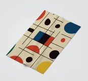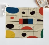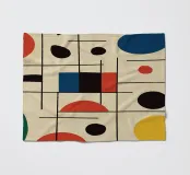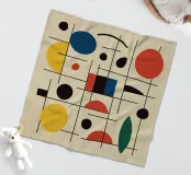 Un insieme di forme colorate, in particolare cerchi e linee, crea una composizione dinamica. L'uso di colori primari aggiunge un'atmosfera vibrante e moderna.