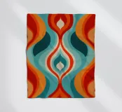 Quest'opera d'arte è un'illusione ottica ipnotica e un omaggio all'arte psichedelica e all'op art della fine degli anni '60 e dell'inizio degli anni '70. Forme curve e fluide in rosso fiammeggiante e arancione caldo incontrano i toni freddi del turchese e del blu-verde, creando una tensione dinamica, ardente ma acquatica. La simmetria verticale e i motivi stratificati a forma di goccia ricordano i disegni iconici di tessuti e carte da parati dell'epoca. Il motivo crea un'incessante attrazione visiva e sembra quasi respirare. Un richiamo visivo energico e ipnotico.