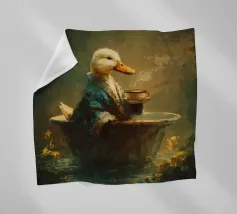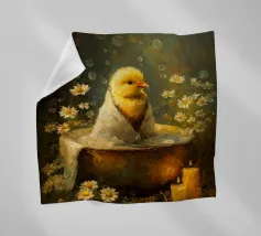 Un simpatico anatroccolo fa capolino da sotto un morbido asciugamano bianco. Le sue soffici piume gialle e i suoi occhi curiosi creano una scena adorabile e affascinante.