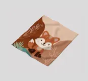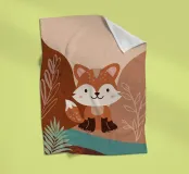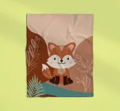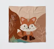Un'affascinante illustrazione minimalista di una piccola volpe felice seduta in una scena di bosco dai toni caldi. Con colori tenui e dettagli giocosi, questa opera d'arte cattura perfettamente la bellezza accogliente e naturale della vita nei boschi, ideale per le decorazioni di asili nido, stampe per bambini o progetti a tema animale.