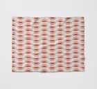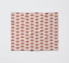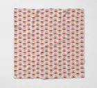 Un motivo a onde ripetitive nei toni del rosso e del rosa forma un disegno geometrico. Il motivo è distribuito uniformemente su uno sfondo chiaro, creando un effetto visivamente armonioso.