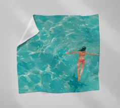 Una donna che galleggia senza sforzo nell'acqua limpida, con le sue forme che si fondono con la calma dell'oceano. Questo pezzo minimalista cattura la libertà, l'immobilità e la connessione con la natura.